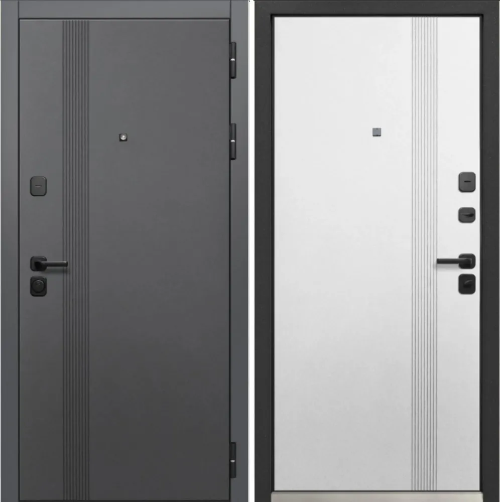 Металл: Порошково-полимерное покрытие, цвет Муар черный Отделка снаружи: лист стали + ламинированная МДФ панель 12мм , цвет Сатин графит
